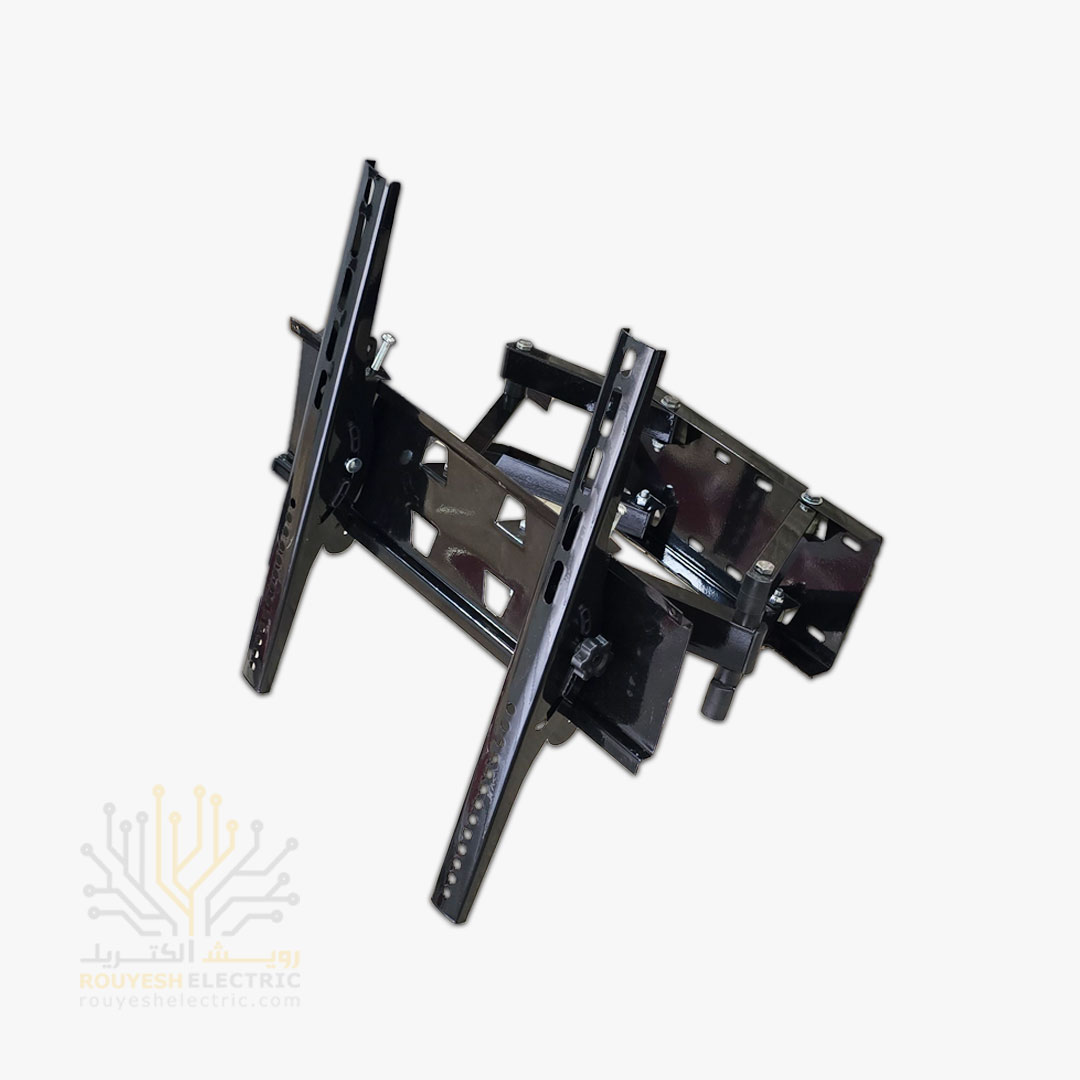 این پایه با اتصال به دیوار از طریق پیچ و رول‌پلاک‌های مخصوص، تلویزیون را به‌صورت ایمن نگه می‌دارد. دو بازوی متحرک آن امکان حرکت تلویزیون را در جهات مختلف فراهم می‌کنند: