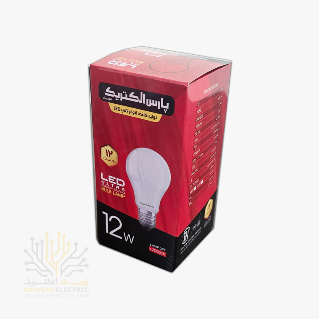 لامپ ال ای دی 12 وات حبابی برند پارس الکتریک مهتابی