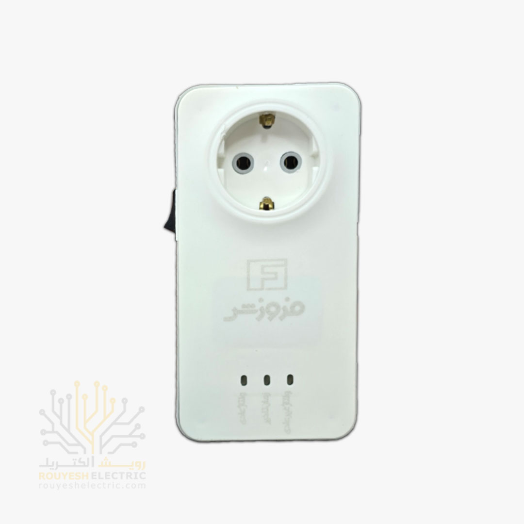 محافظ برق لباسشویی و ظرفشویی دیواری تک خانه برند فروزش مدل FR140 ارتدار کلید دار بدنه سفید آنالوگ