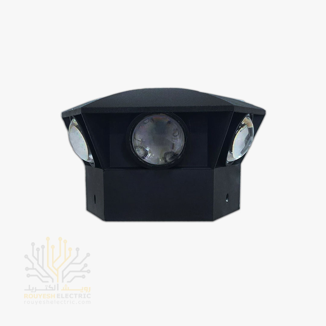 چراغ دیواری دکوراتیو 6 وات برند ایران مهر مدل قطاری کد ایران 03 بدنه ABS مشکی نور آفتابی