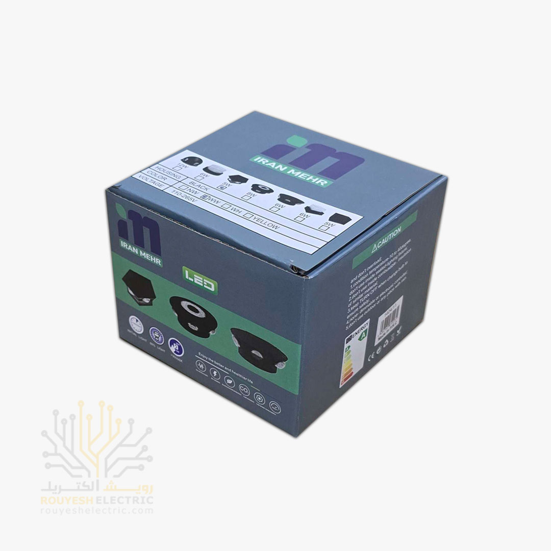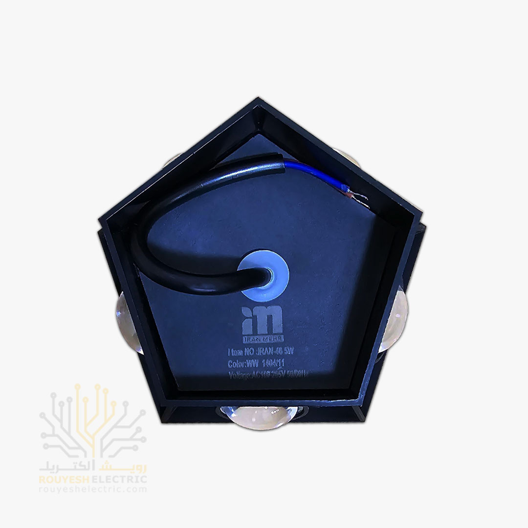چراغ دکوراتیو 5 وات برند ایران مهر پنج طرفه کد ایران 46 بدنه مشکی نور آفتابی 6 ماه گارانتی