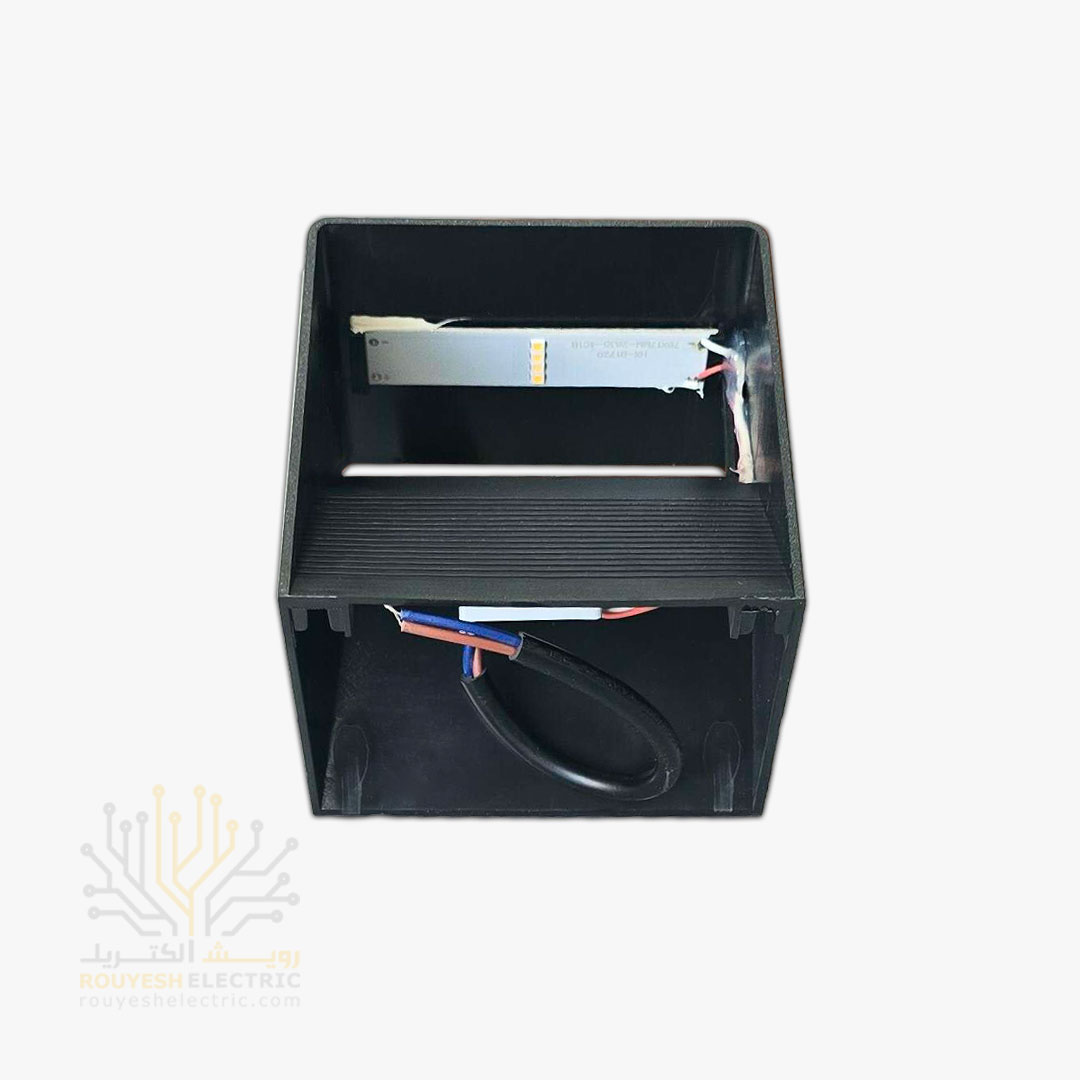 چراغ دیواری دکوراتیو 8 وات برند ایران مهر مدل قطاری بدنه آلومینیوم مشکی نور آفتابی