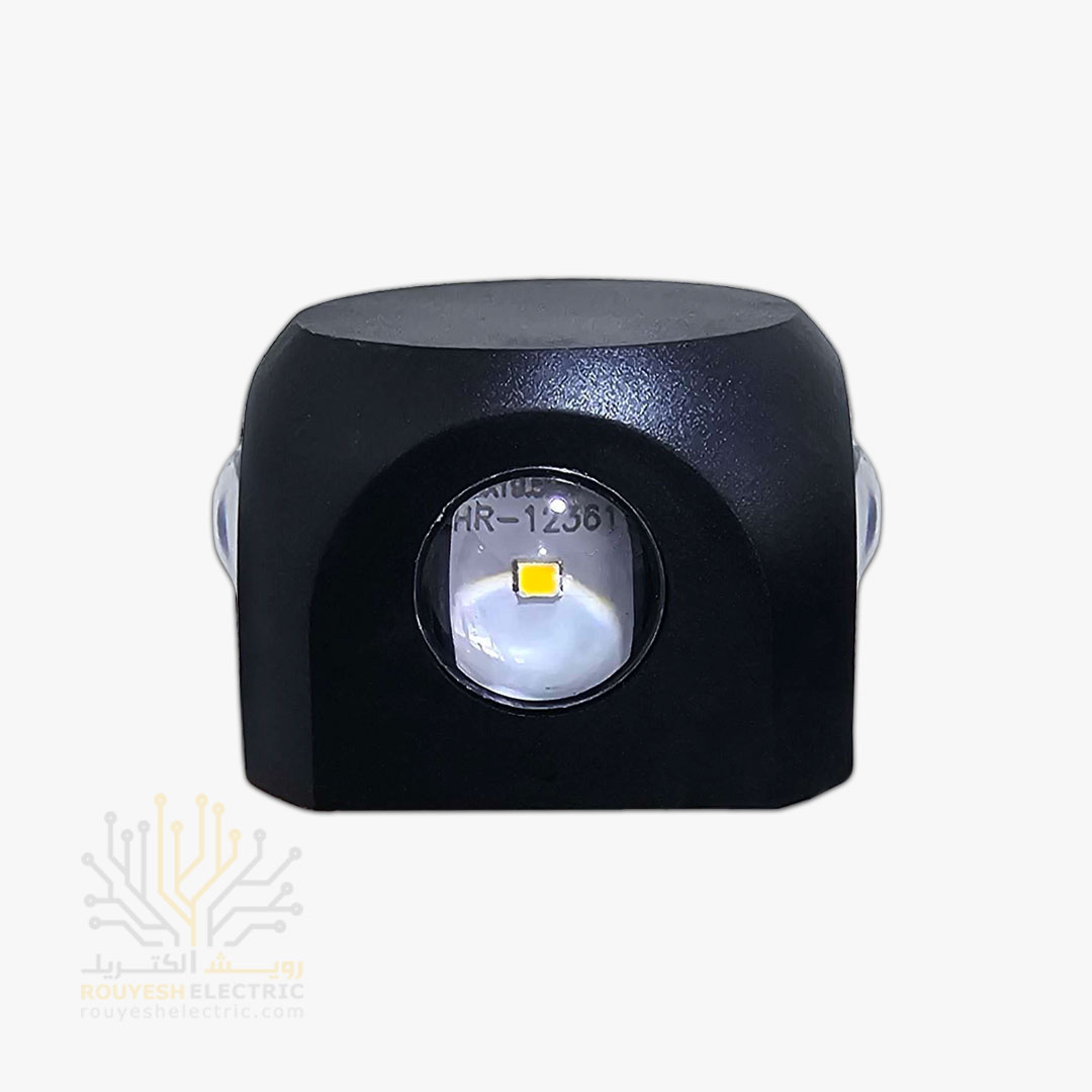 چراغ دیواری دکوراتیو 4 وات برند ایران مهر مدل چهار طرفه کد ایران 65 بدنه مشکی نور آفتابی