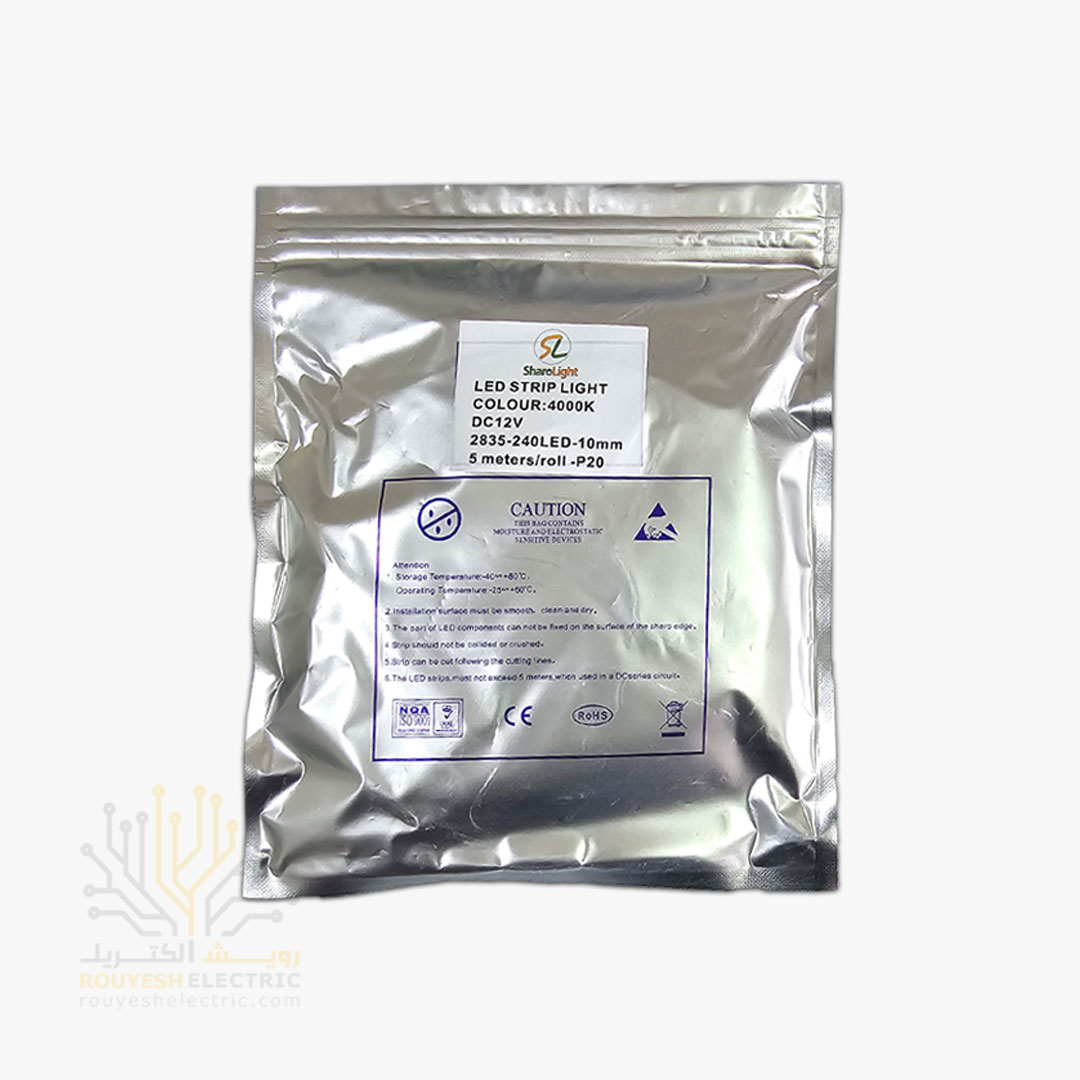 ریسه نواری لاینر 220 ولت برند شارو لایت تراکم 240 برش 10 سانت 1 میل نچرال مخصوص فضای مرطوب حلقه 50 متر