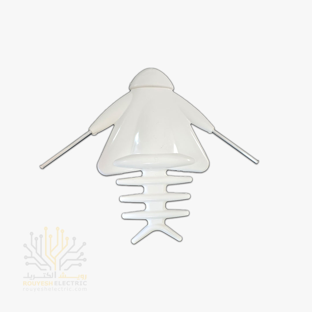 این یه آنتن برقی برای تلویزیونه که شکلش مثل موشک یا دنباله‌داره، حدود نیم متر طول و 35 سانت عرض داره و بدنه‌ش پلاستیکی و سفید رنگه. موتوری که داخلش قرار داده میتونه آنتن رو بچرخونه و دو خروجی داره که می‌تونی همزمان به دو تلویزیون وصلش کنی.