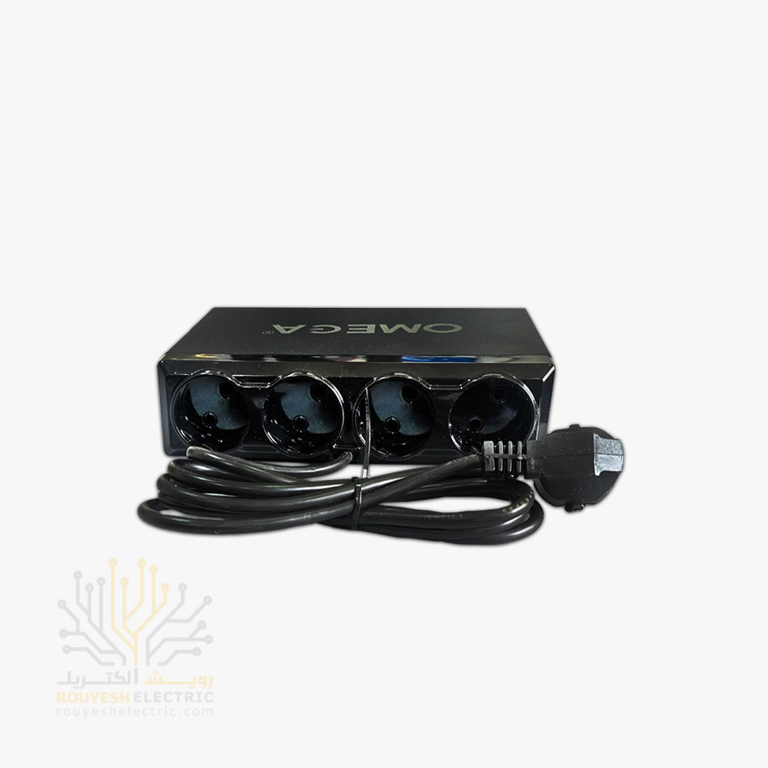 محافظ برق کامپیوتر سیار چهار خانه فلزی برند امگا مدل F6000 بدون ارت استاندارد دیجیتال 2 متری