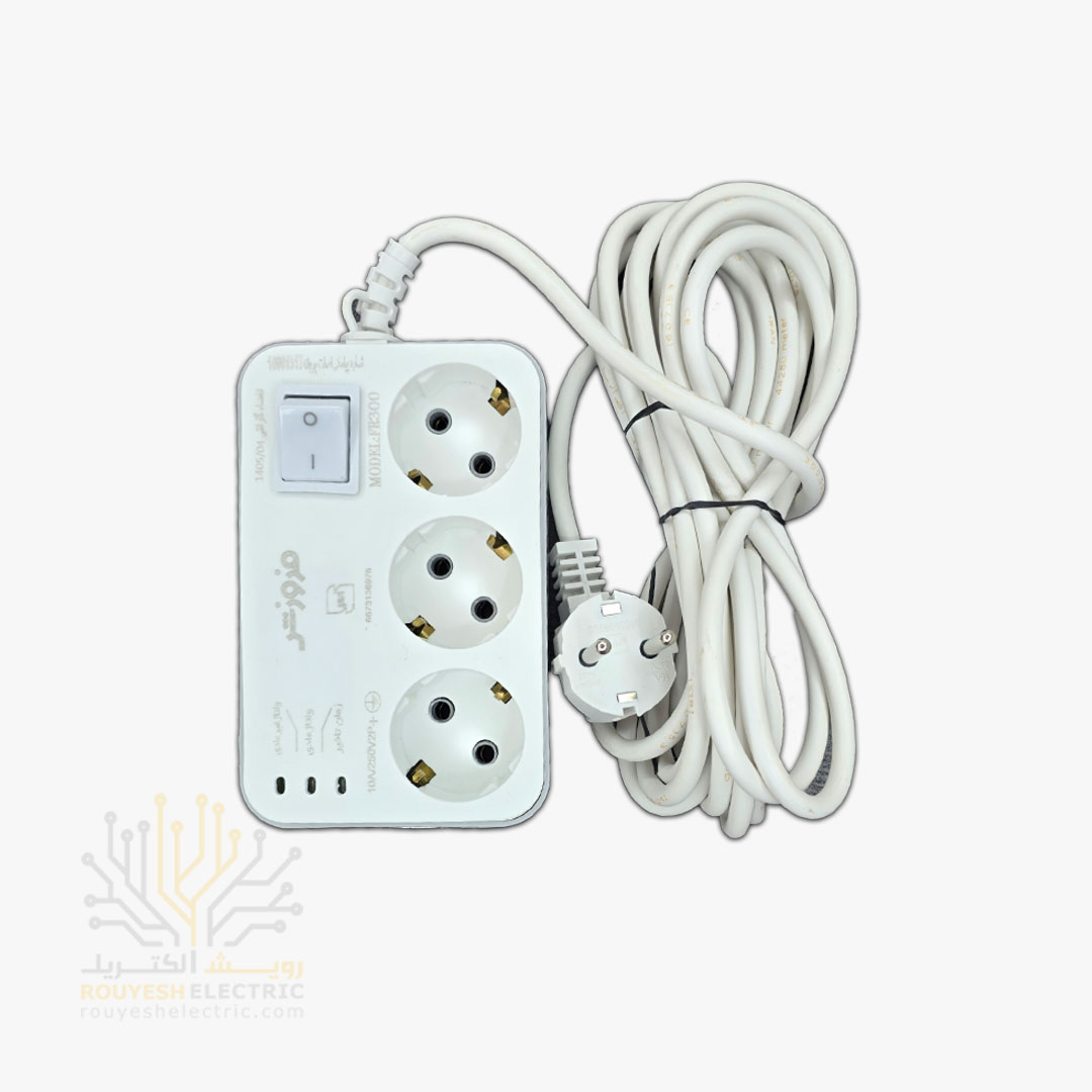 این محافظ برق از همون مدل‌های جمع‌وجور و خوش‌دستیه که ظاهر ساده ولی کاربردی داره. طول کابل سفیدش نزدیک ۴.۸ متره و برای جاهایی که فاصله تا پریز زیاده واقعاً به‌دردبخوره. وجود سه ورودی برق، کلید قطع‌ووصل، و سیم‌گیر ورودی هم باعث می‌شه هم استفاده‌اش راحت باشه هم سیم دستگاه‌ها آسیب نبینن.
