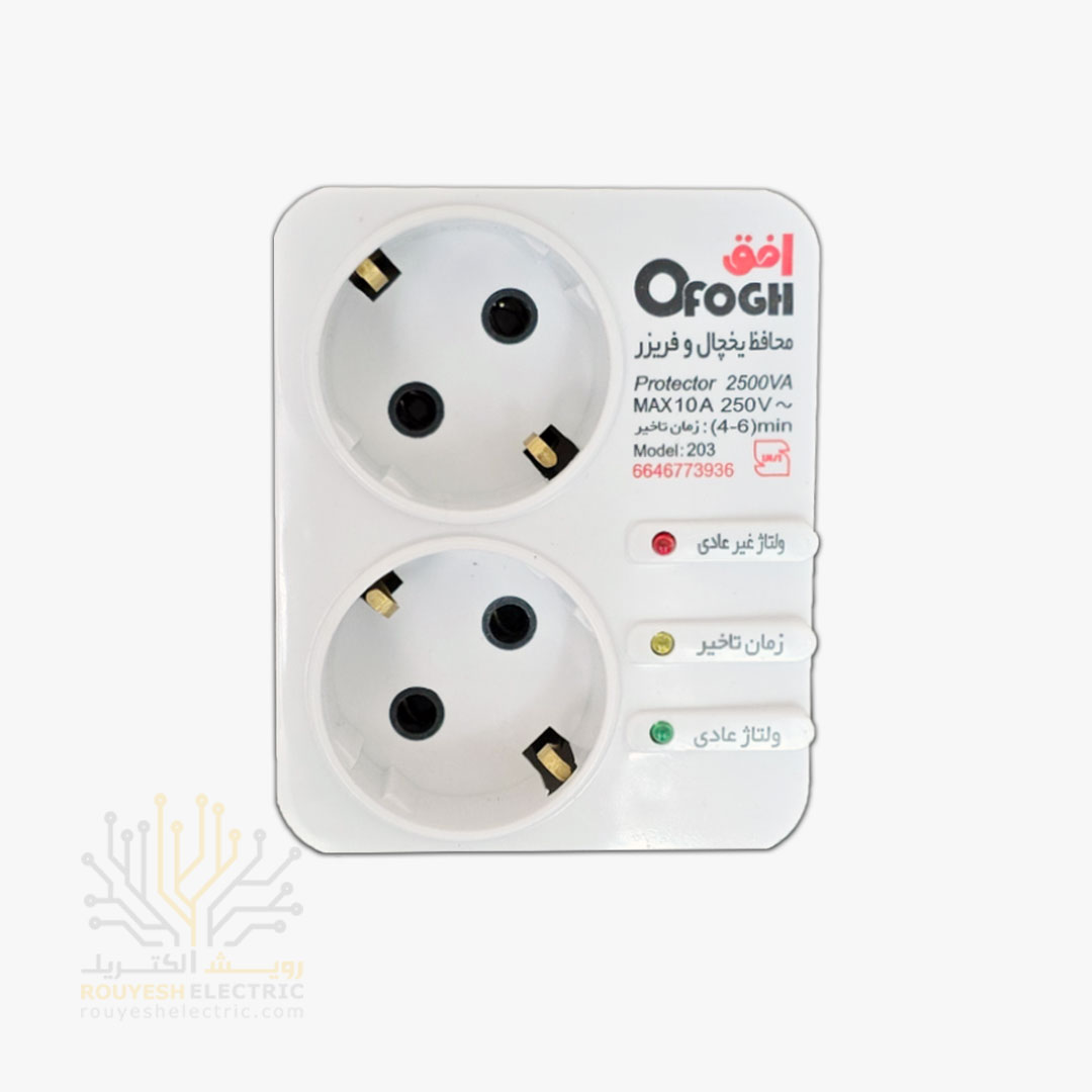 این محافظ برق با دو خانه و ارتدار مخصوص یخچال و فریزرهای خانگی یا فروشگاهیه. برای محلهایی مناسبه که برق ناپایدار هست یا احتمال نوسان و اتصال برق وجود داره. همینطور جاهایی که میخوای عمر یخچال بیشتر بشه و از خسارتهای برقی جلوگیری بشه، این وسیله کمک میکنه.