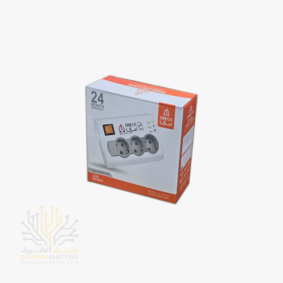 محافظ برق یخچال سیار سه خانه برند امگا مدل p3100 استاندارد بدون ارت کلید دار 3 متری