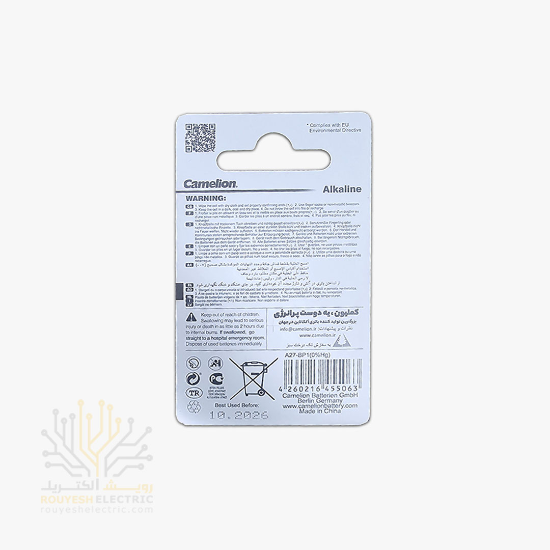 باطری ریموت آلکالاین برند کاملیون مدل A27 کارت تکی
