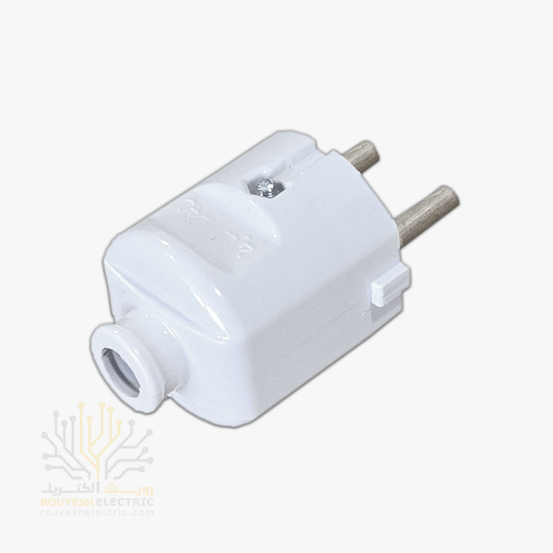 این دوشاخه برق دارای میله‌های اتصال از جنس برنج با کیفیت و بدنه‌ای به رنگ سفید می‌باشد. دوشاخه‌های گرد معمولاً برای اتصال ایمن و پایدار لوازم برقی به پریزهای برق طراحی شده‌اند و استفاده از برنج در ساخت میله‌ها، رسانایی الکتریکی بالا و مقاومت در برابر خوردگی را تضمین می‌کند.
