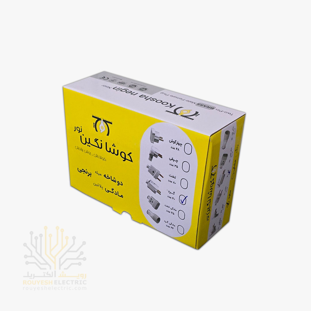 دوشاخه برق گرد برند کوشا نگین میله برنجی رنگ سفید