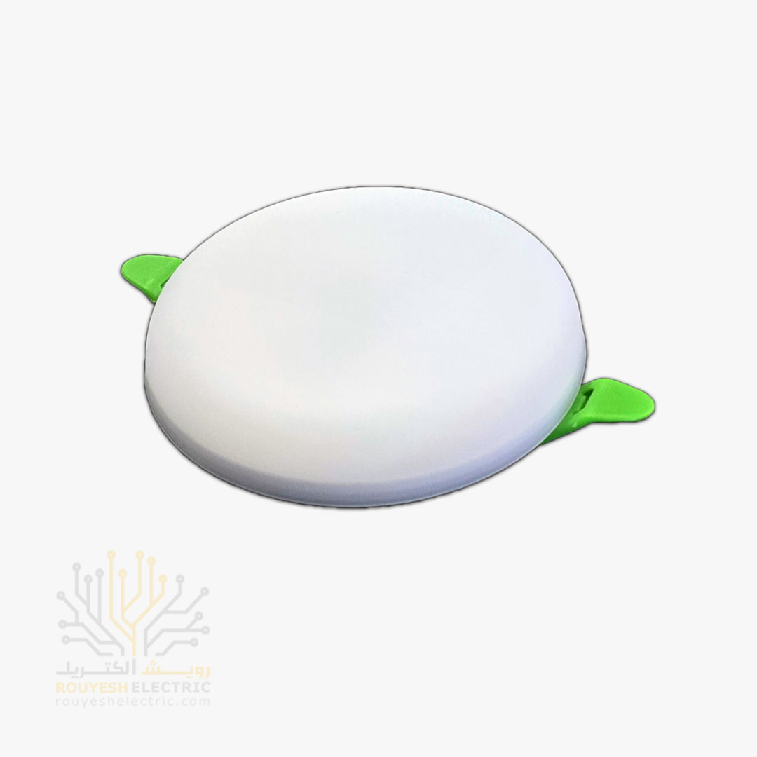 پنل سقفی توکار فول لایت 12 وات برند ایران مهر فنر متغیر دایره استاندارد رنگ مهتابی
