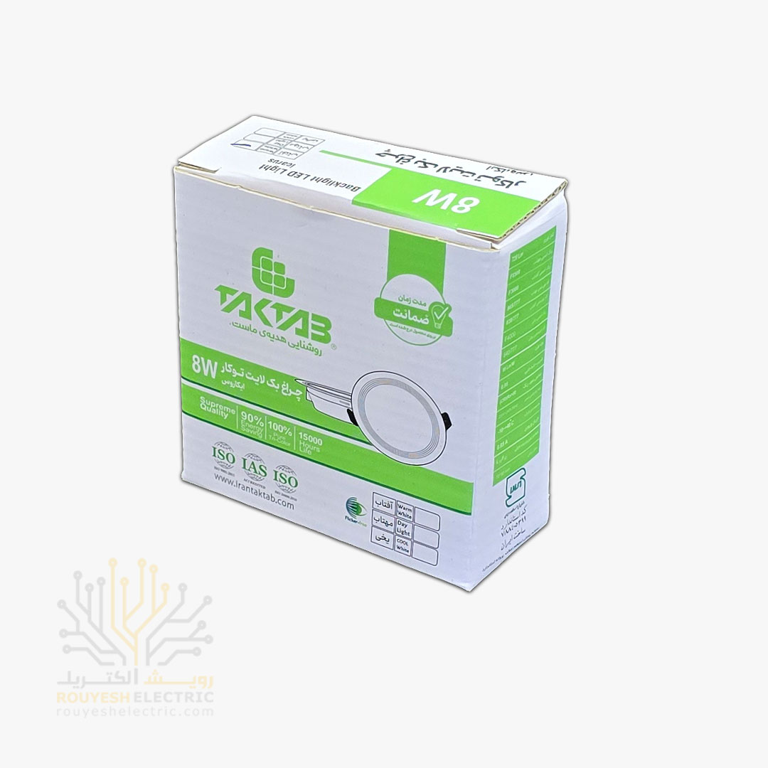 پنل سقفی توکار بک لایت 8 وات برند تک تاب مدل ایکاروس فنر متغیر دایره استاندارد رنگ مهتابی