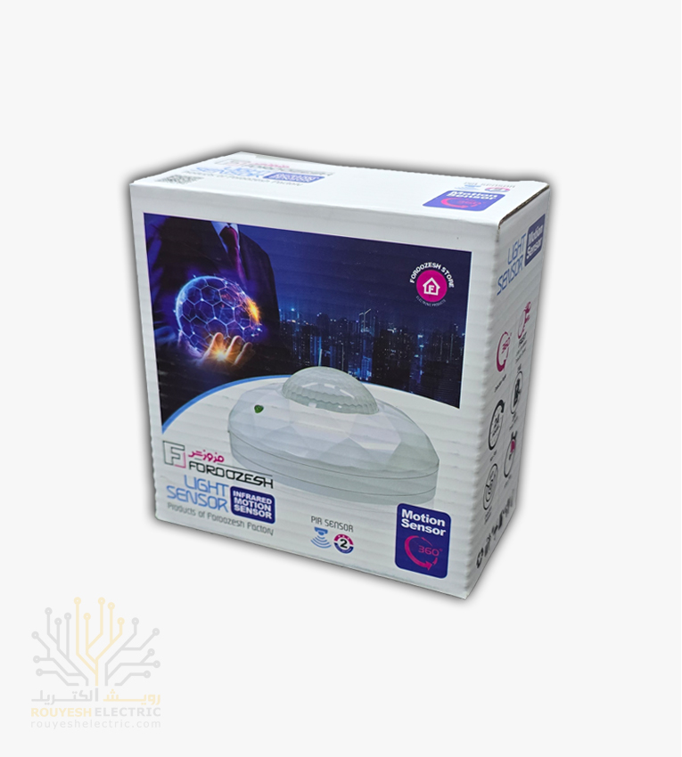 سنسور سقفی فروزش ۳۶۰ درجه یک حسگر حرکتی هوشمند است که برای کنترل خودکار روشنایی در فضاهای داخلی طراحی شده. این سنسور با زاویه دید کامل ۳۶۰ درجه، حضور افراد را تشخیص داده و بهصورت خودکار لامپ یا سیستم روشنایی متصل را روشن یا خاموش میکند.