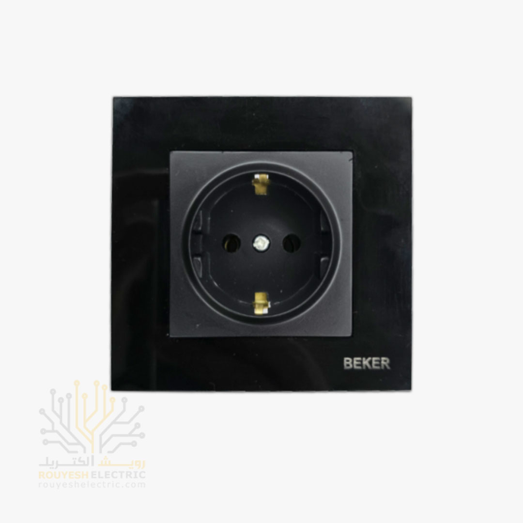 پریز برق ساده توکار برند بکر با مغزی پلی کربنات مدل گلس مشکی