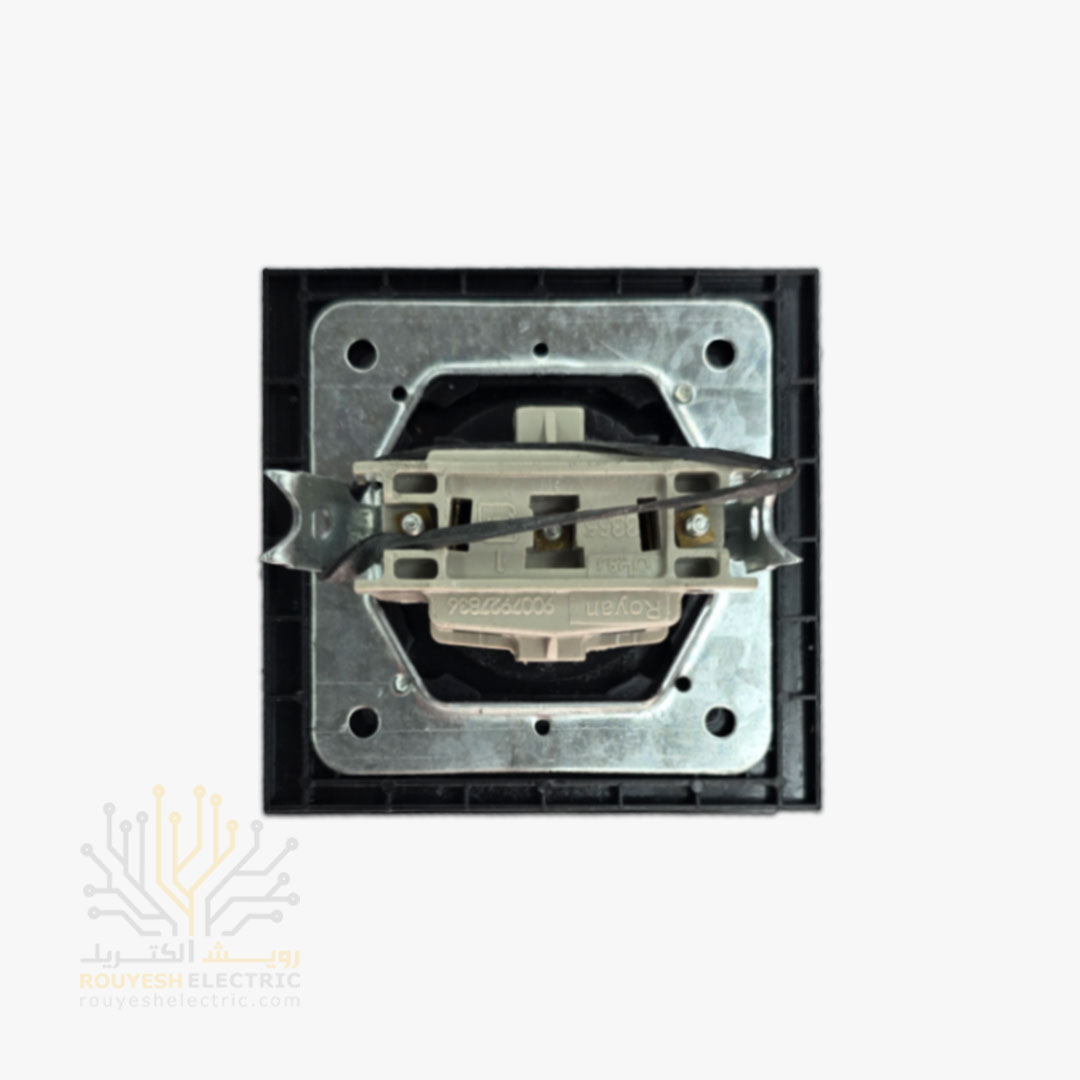 • پوشش خارجی گلس مشکی: قسمت بیرونی، ساخته شده از پلاستیک شفاف و براق (گلس مشکی) که ظاهر زیبا و مدرن پریز را تکمیل می‌کند و در برابر خط و خش و ضربه مقاوم است.