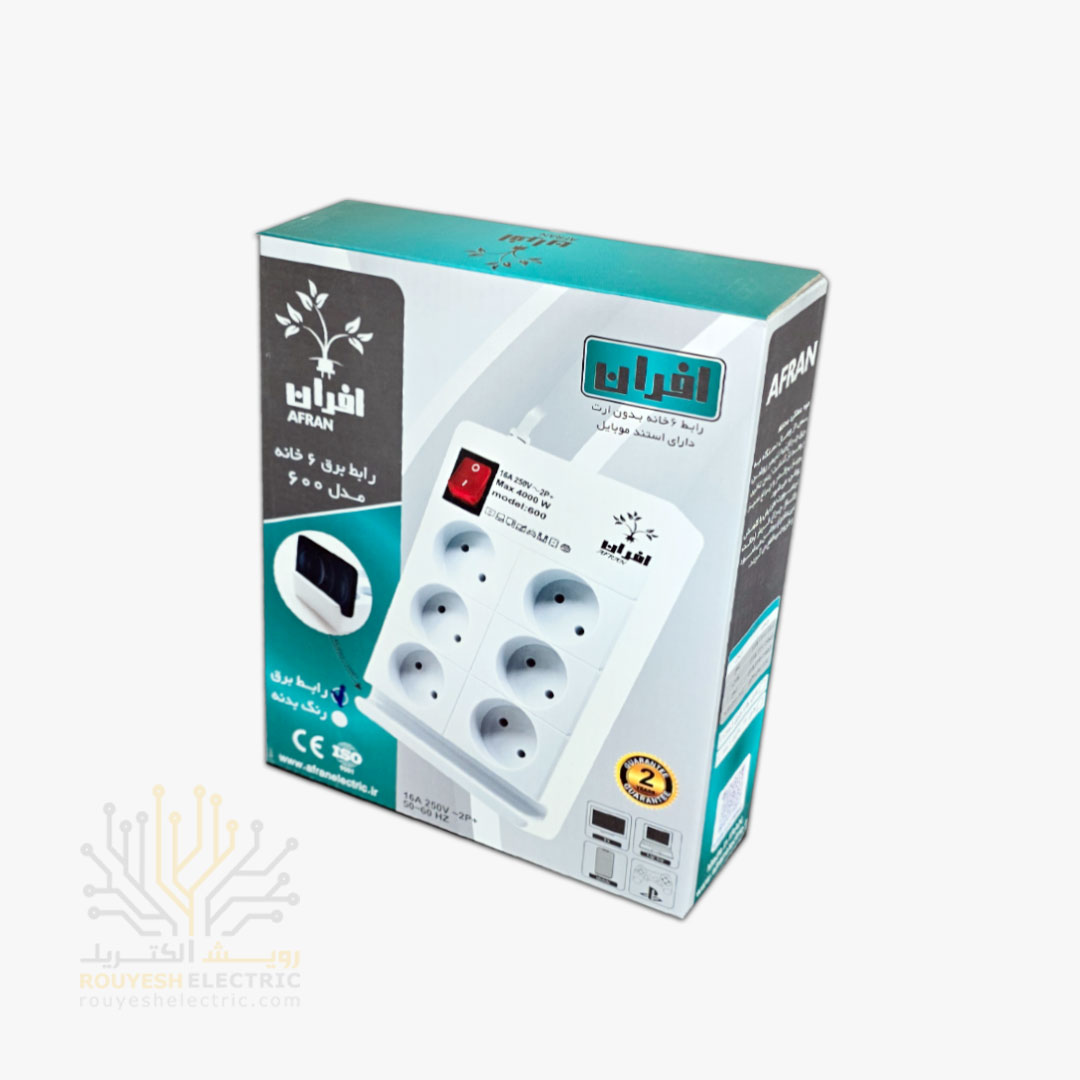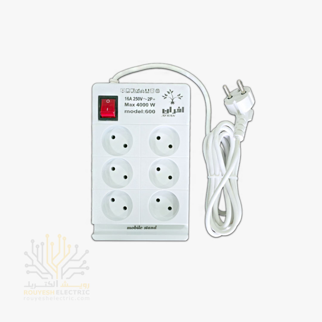 شش راهی برق برند افران کد 600 استاندارد 6 خانه دارای استند موبایل 3 متری