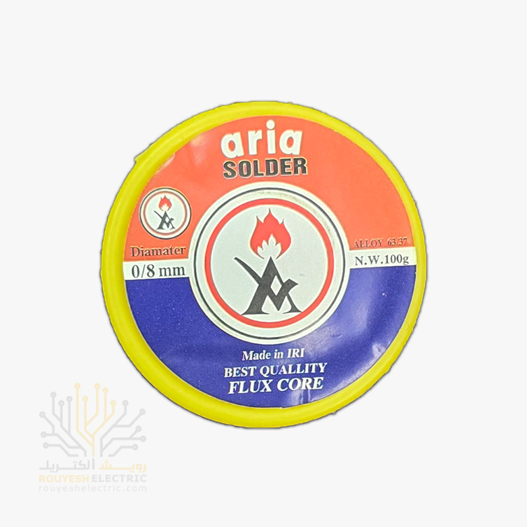 سیم لحیم کاری برند آریا 100 گرمی یک نوع آلیاژ فلزی با درصد مشخصی از قلع و سرب (یا گاهی بدون سرب) است که به‌منظور اتصال قطعات الکترونیکی و فلزی به کار می‌رود. این سیم با داشتن هسته فلکس داخلی، به بهبود اتصال، کاهش اکسیداسیون و افزایش کیفیت لحیم‌کاری کمک می‌کند.