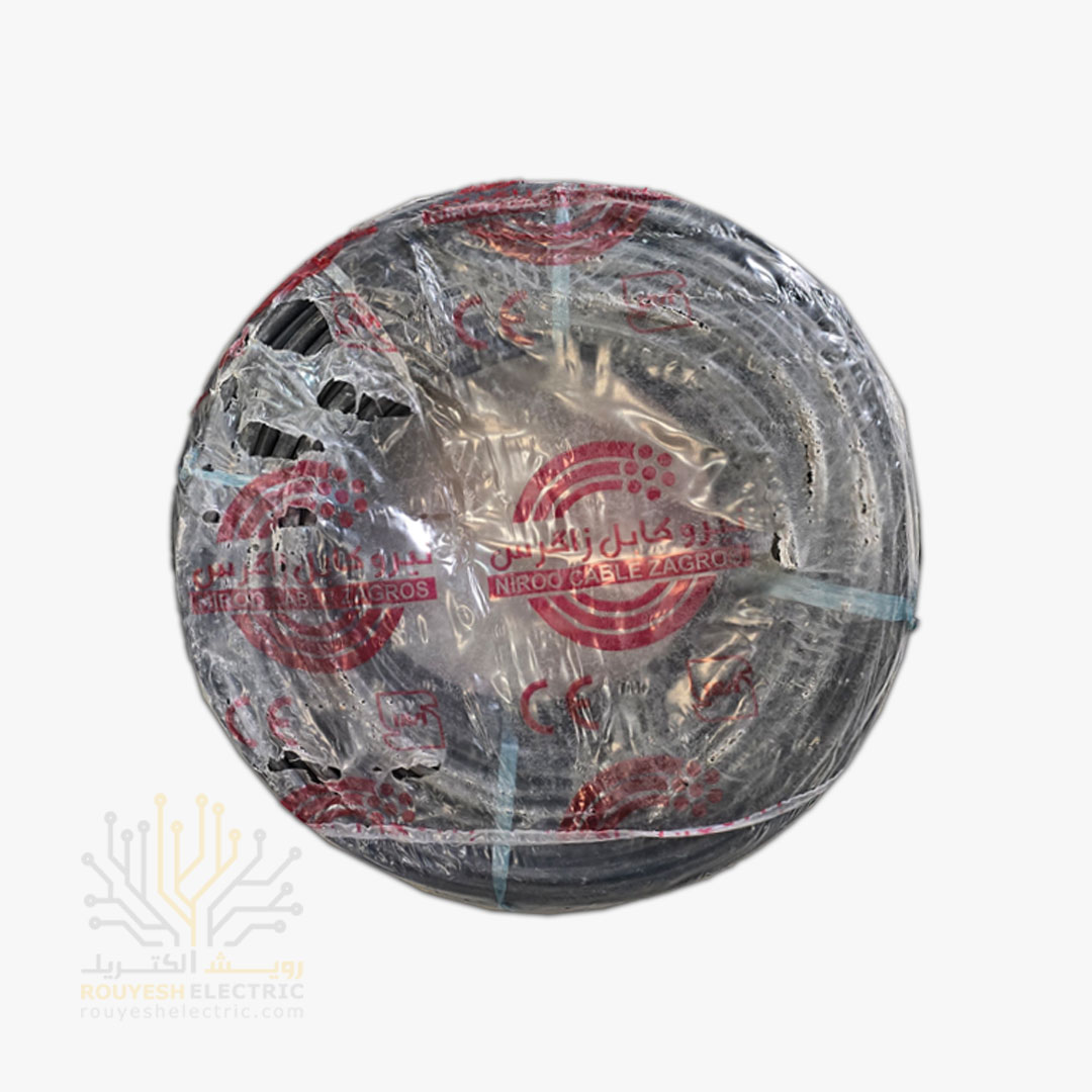 کابل برق نمره 2x1/5 برند نیرو کابل زاگرس استاندارد حلقه 102 متری رنگ مشکی