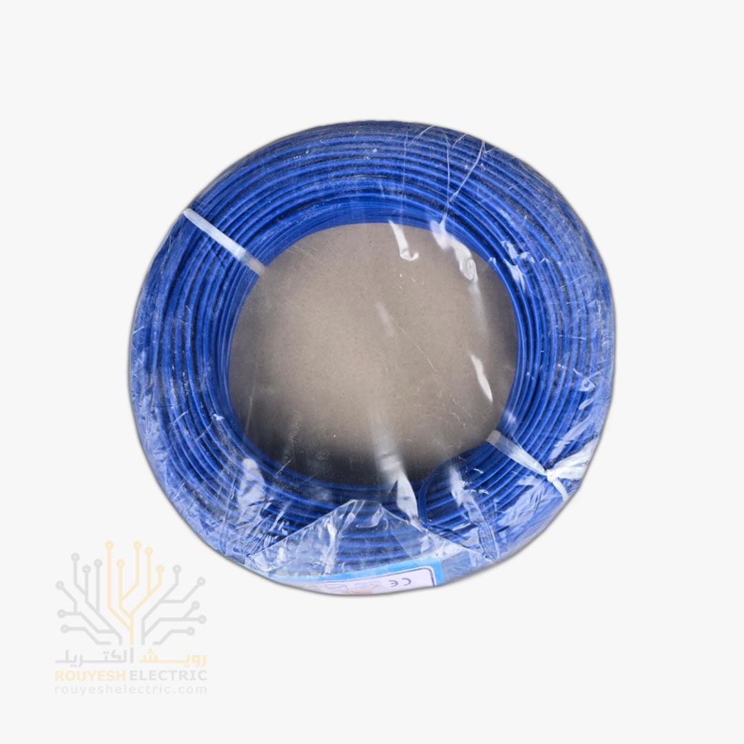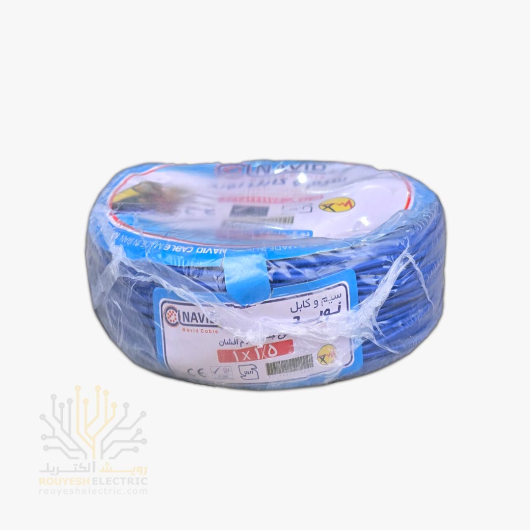 سیم برق نمره 1x1/5 برند نوید استاندارد رنگ آبی حلقه 100 متری
