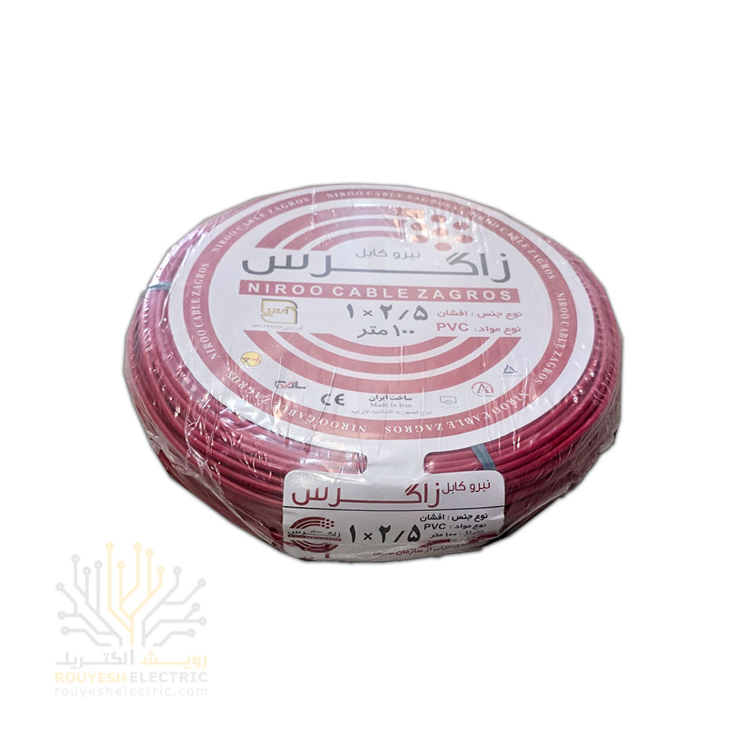 سیم برق نمره 1x2/5 برند نیرو کابل زاگرس استاندارد حلقه 100 متری رنگ زرد
