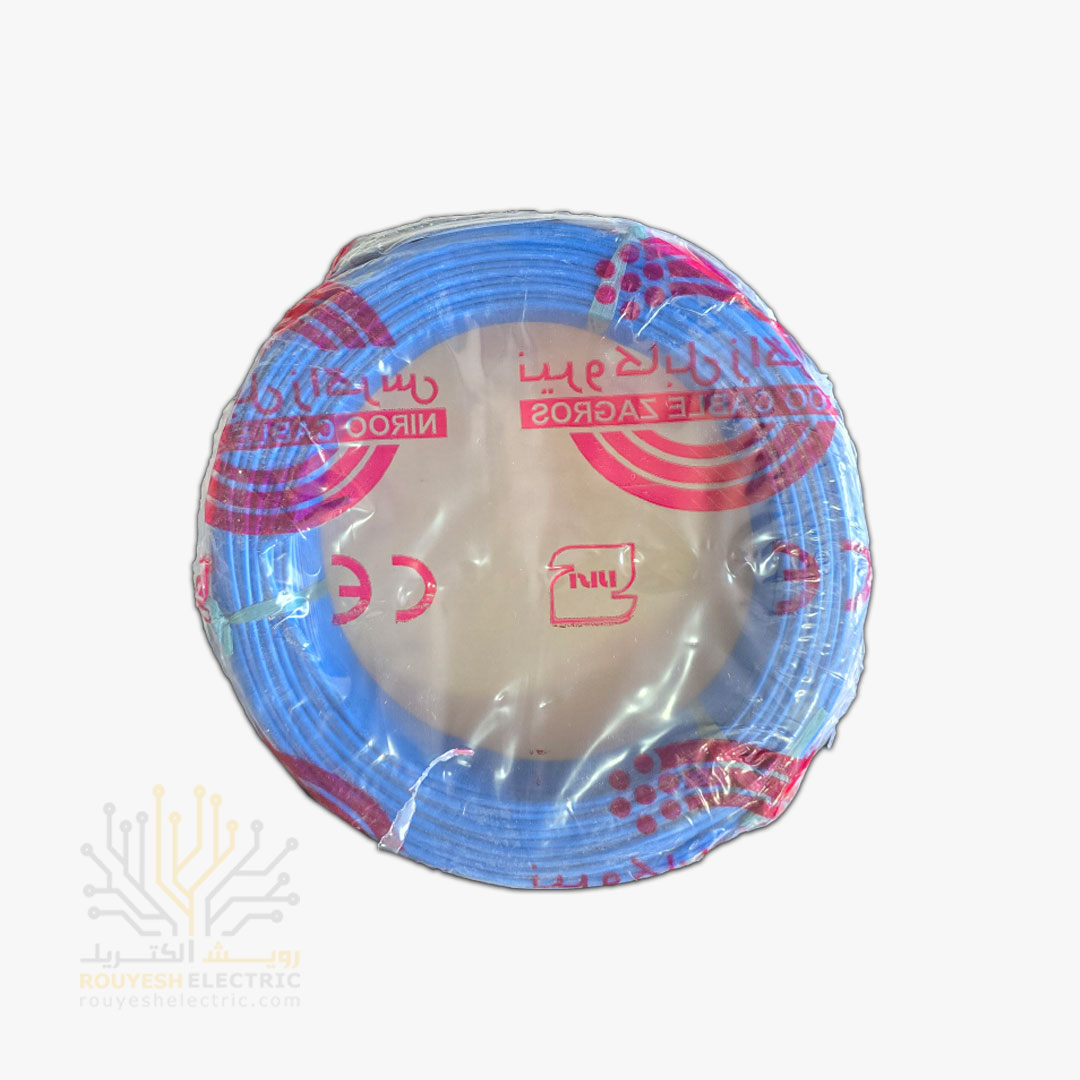 سیم برق نمره 1x1/5 برند نیرو کابل زاگرس استاندارد حلقه 100 متری رنگ آبی