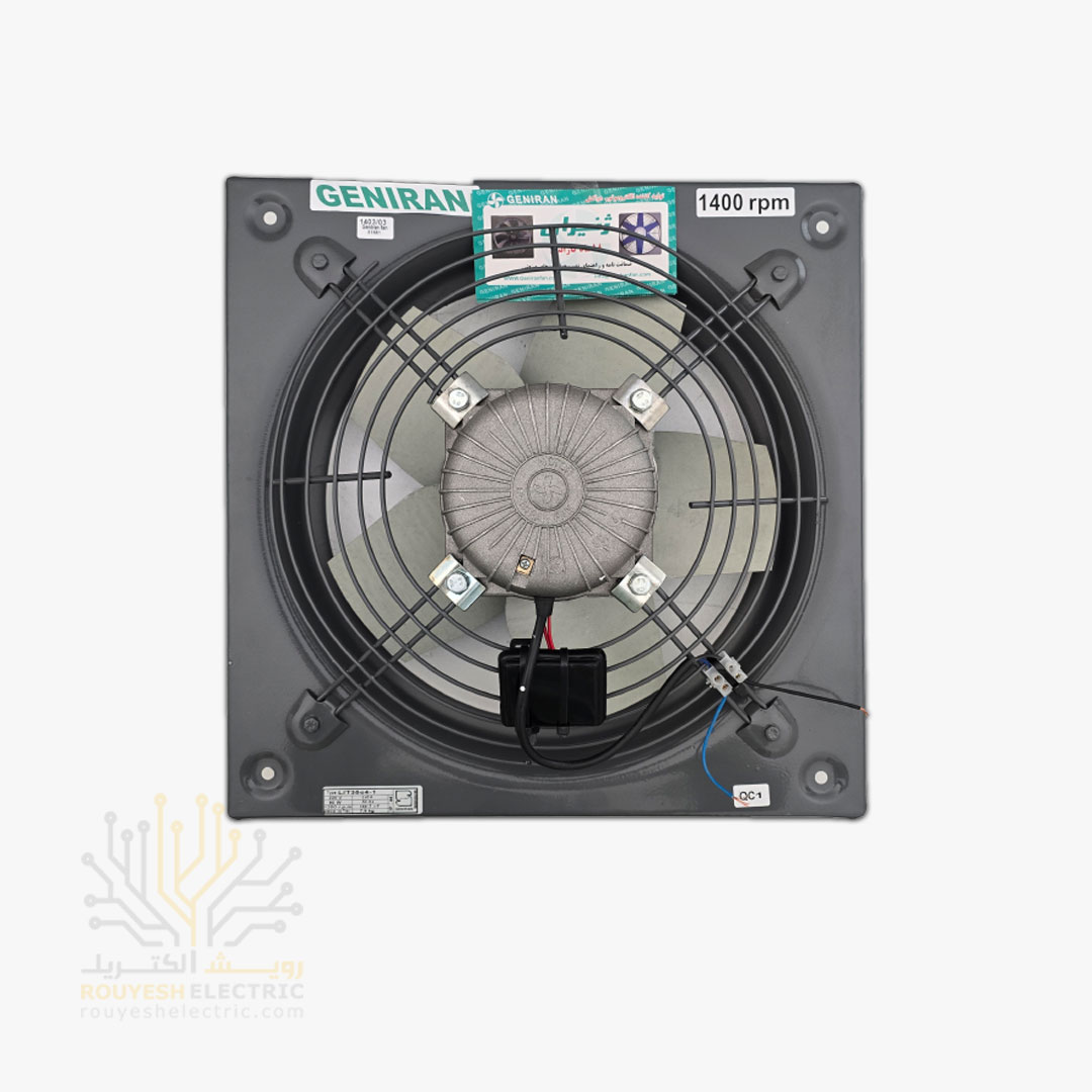 هواکش صنعتی 35 سانت برند ژنیران موتور ایران استاندارد 5 پر فلزی 1400 دور ضمانت تعویض