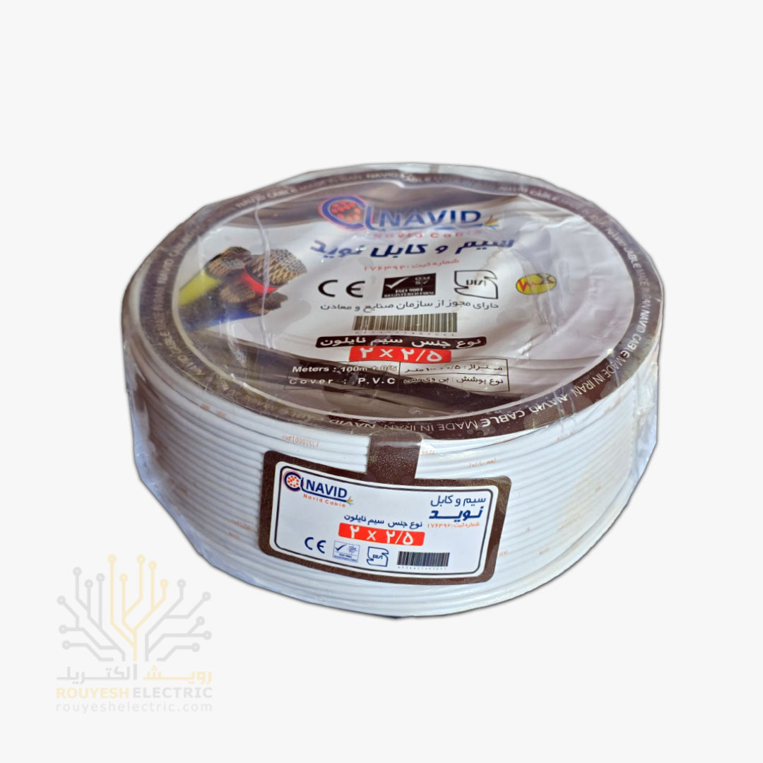 سیم برق نایلون نمره 2x2/5 برند نوید حلقه 100 متری