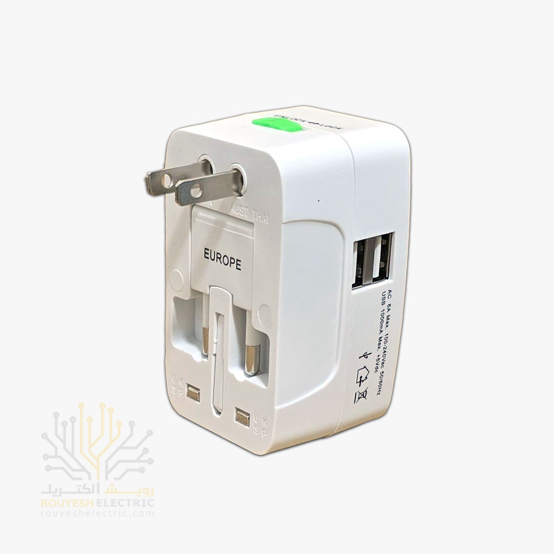 تبدیل 3 به 2 برند یاس 3 حالته قفل شو 13 آمپر دارای USB 2