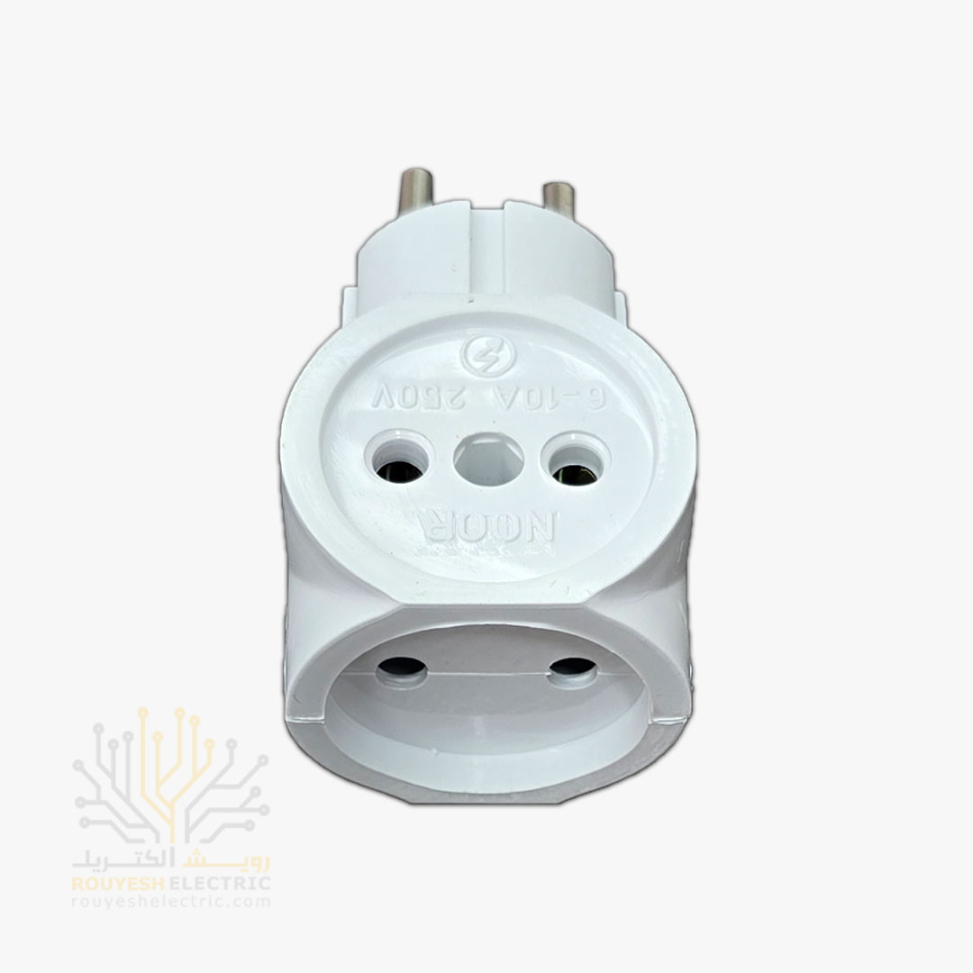 سهراهی دیواری کپل گرد برند نور یک چندراهی برق ساده و اقتصادی است که با طراحی گرد و نصب مستقیم روی پریز، امکان استفاده همزمان از سه دستگاه برقی را فراهم میکند.