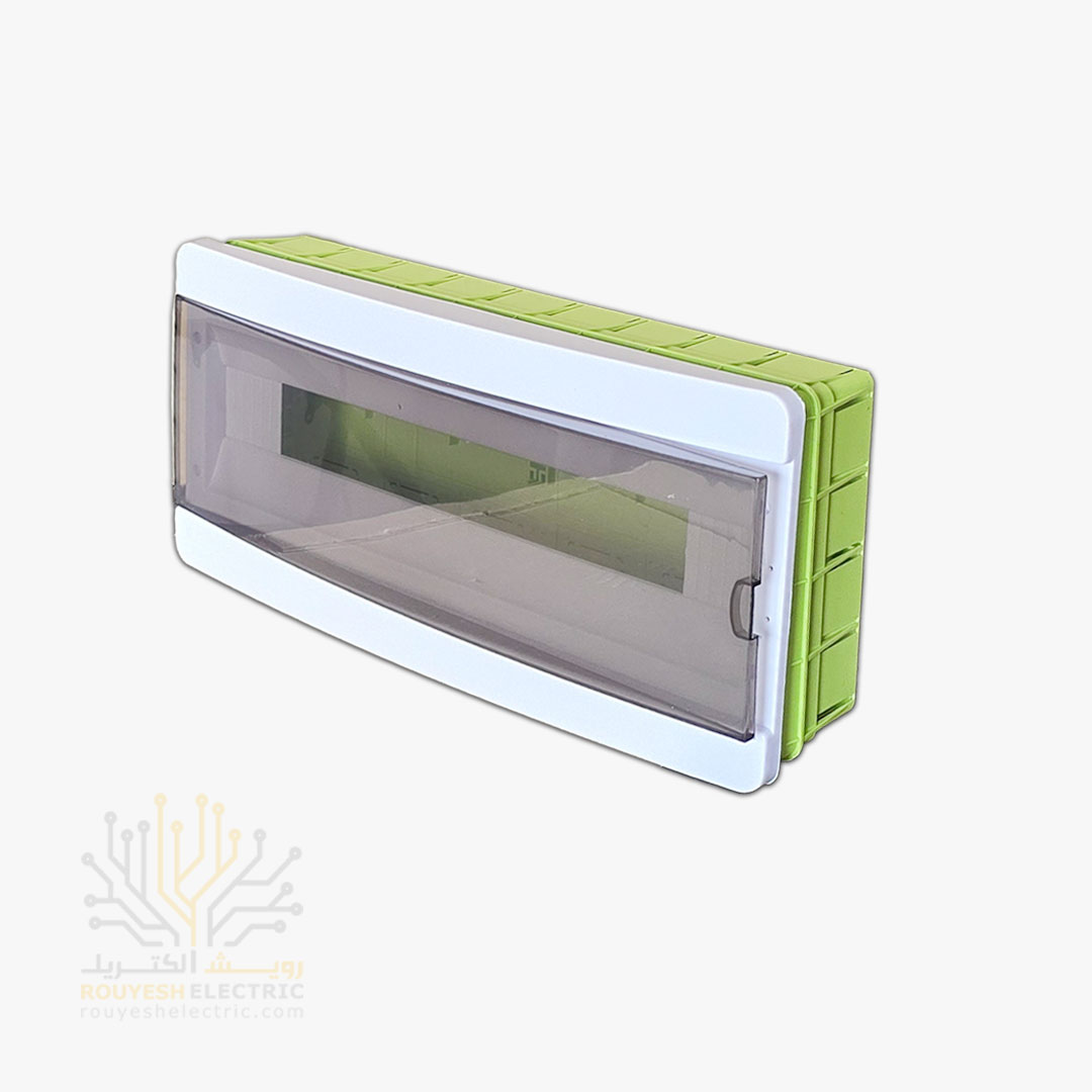 این جعبه فیوز طراحی مستطیلی و بدنه‌ای از پلاستیک مقاوم داره که هم سبک و هم بادوامه. ابعادش حدود ۴۹ در ۲۲ در ۱۱ سانتی‌متره و وزنش حدود ۱۰۵۰ گرمه. رنگ سبز بدنه در کنار درب سفیدش جلوه‌ای تمیز و مرتب ایجاد کرده. داخلش فضای کافی برای مونتاژ راحت داره و دو محل مخصوص برای نصب شینه ارت و نول در نظر گرفته شده. درب دودی شفافش تا زاویه ۱۸۰ درجه باز می‌شه که دسترسی به داخل رو آسون‌تر می‌کنه. بسته‌بندیش مقوایی و مقاومه و هر بسته شامل یه عدد از محصوله؛ در هر کارتن هم ۲۴ بسته قرار داره.