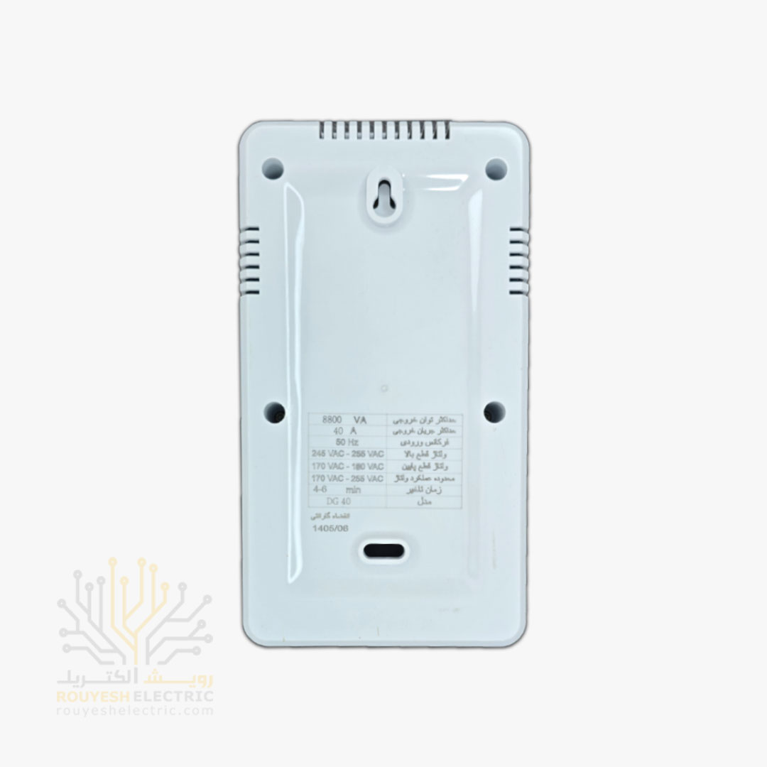 از نظر فنی، این مدل حسابی قدرتمنده؛ شدت جریان ۴۰ آمپر رو پشتیبانی میکنه و برای دستگاههایی که فشار برق بالایی دارن کاملاً مناسبه. ساخت ایران و دارای استاندارد ملیه و مغزی پلیکربناتی باعث دوام و امنیت بیشترش شده. محدوده ولتاژ ۱۷۰ تا ۲۵۵ ولت بههمراه زمان تأخیر ۴ تا ۶ دقیقهای کمک میکنه دستگاه بعد از نوسان برق، با خیال راحت و بدون ریسک روشن بشه. دو سال گارانتی تعویض و ذوبنشدگی در کنار یک سال ضمانت برگشت کالا، باعث میشه خریدش کاملاً مطمئن و بدون نگرانی باشه.