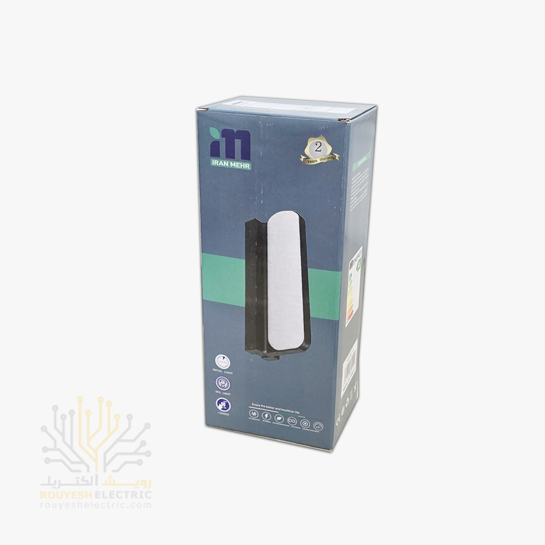 چراغ دیواری دکوراتیو 22 وات برند ایران مهر کد ایران 12 بدنه مشکی نور مهتابی