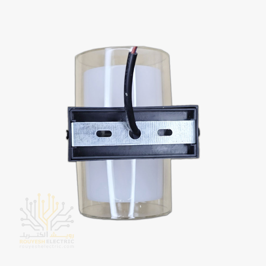چراغ دیواری دکوراتیو 12 وات برند ایران مهر مدل استوانه دو طرفه کد ایران 19 بدنه مشکی نور یخی