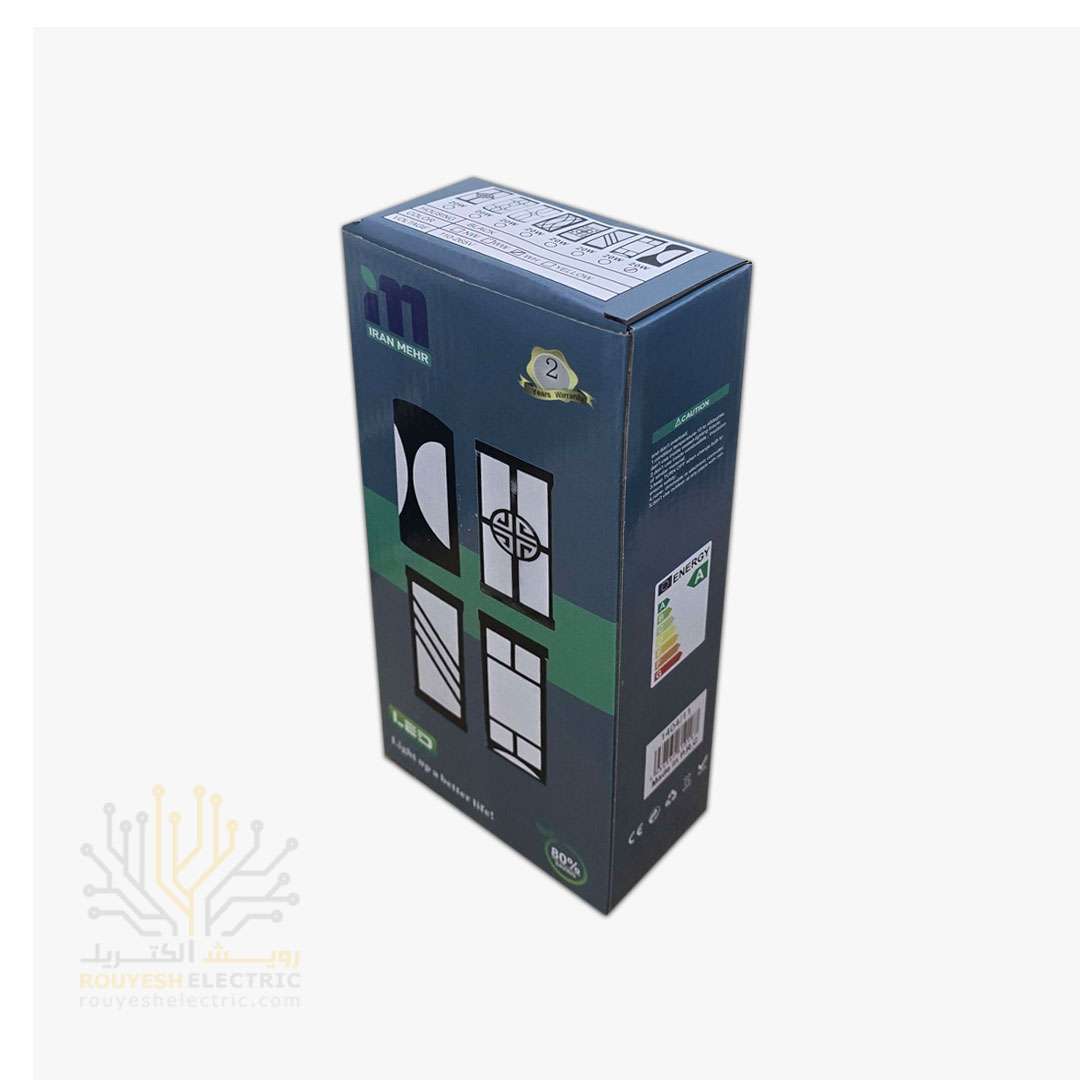 چراغ دیواری دکوراتیو 20 وات برند ایران مهر کد ایران 9.1 بدنه مشکی نور مهتابی 6 ماه گارانتی