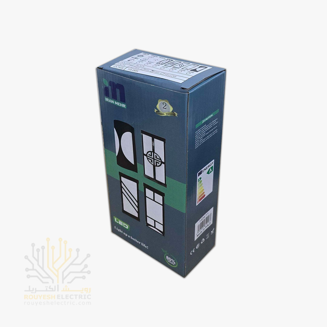 چراغ دیواری دکوراتیو 20 وات برند ایران مهر کد ایران 10.3 بدنه مشکی نور مهتابی 6 ماه گارانتی
