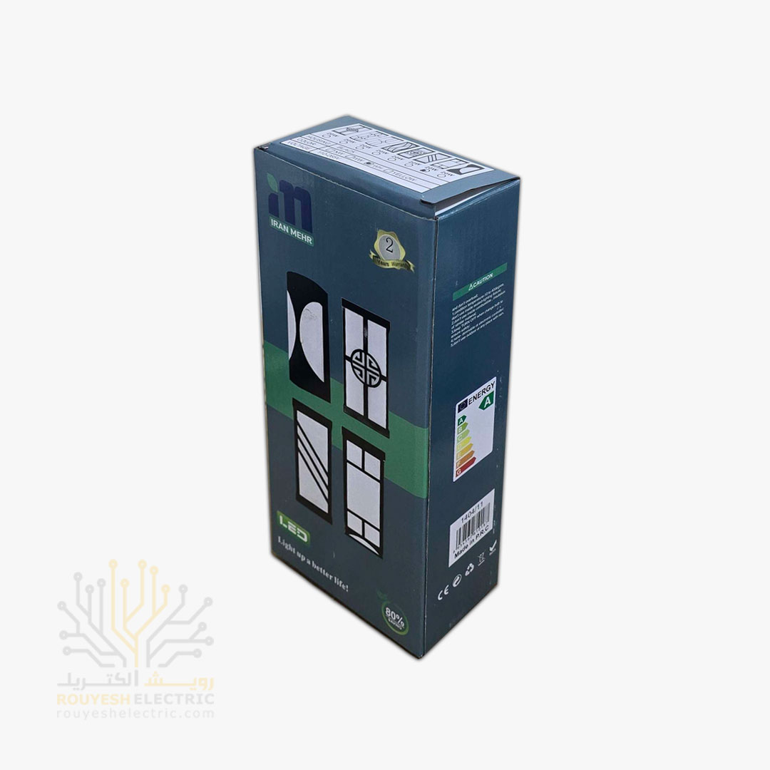 چراغ دیواری دکوراتیو 20 وات برند ایران مهر کد ایران 9.3 بدنه مشکی نور مهتابی 6 ماه گارانتی