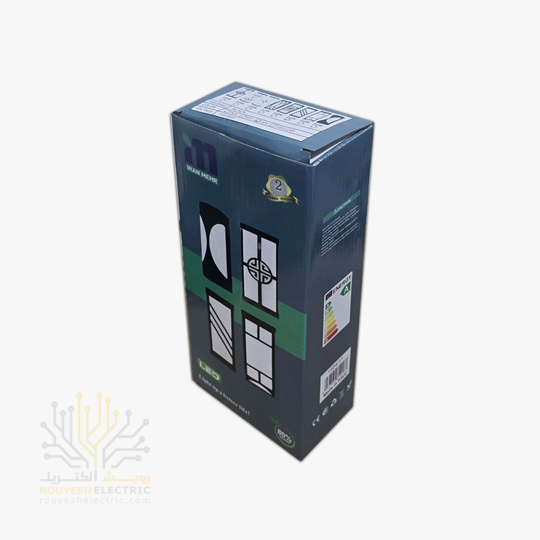 چراغ دیواری دکوراتیو 20 وات برند ایران مهر کد ایران 10.5 بدنه مشکی نور مهتابی 6 ماه گارانتی