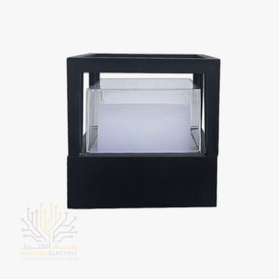 چراغ دیواری دکوراتیو 6 وات برند ایران مهر مدل مکعب یک طرفه کد ایران 21 بدنه مشکی نور آفتابی