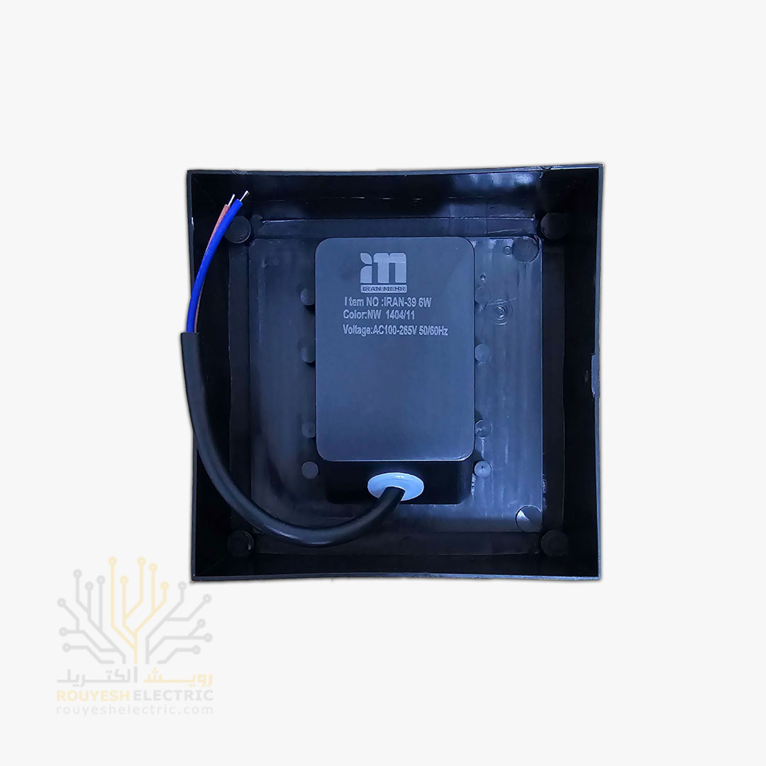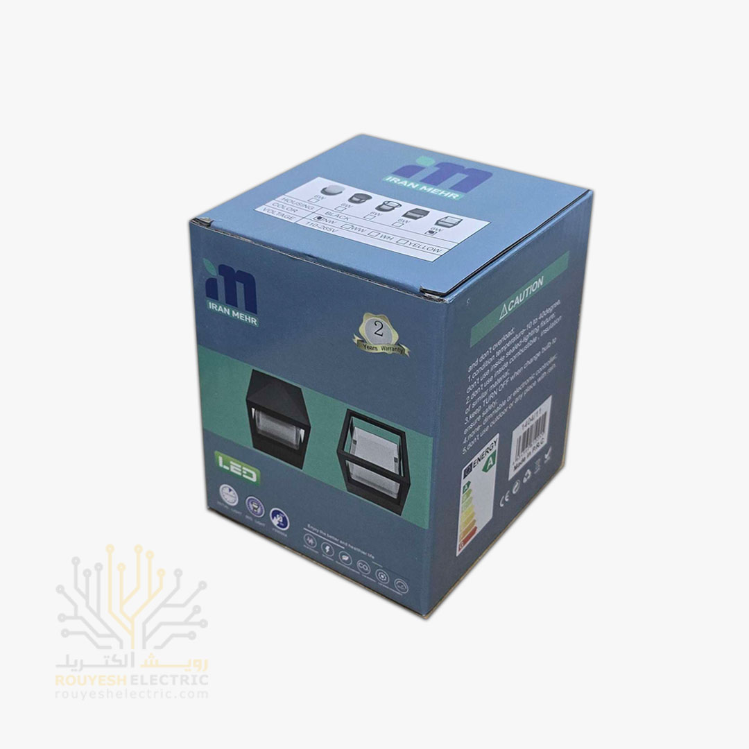 چراغ دیواری دکوراتیو 6 وات برند ایران مهر مدل مکعب یک طرفه کد ایران 39 بدنه مشکی نور نچرال 6 ماه گارانتی