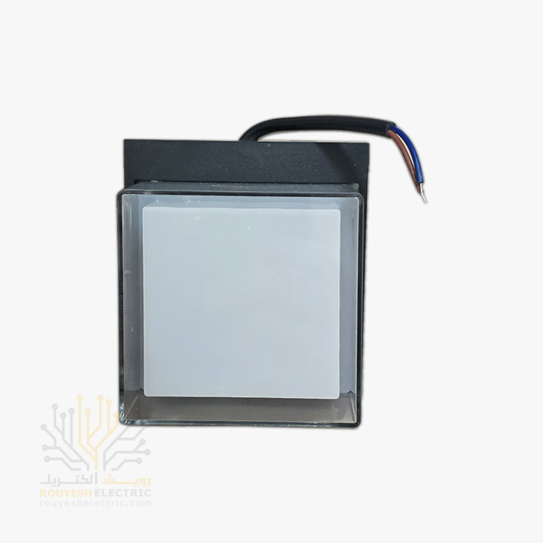 چراغ دیواری دکوراتیو 6 وات برند ایران مهر مدل مکعب یک طرفه کد ایران 21 بدنه مشکی نور یخی