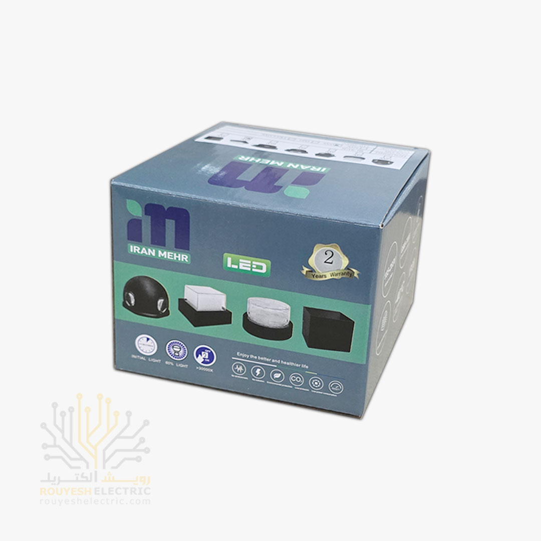چراغ دیواری دکوراتیو 6 وات برند ایران مهر مدل مکعب یک طرفه، یک نورپردازی زیبا و مدرن است که با طراحی خاص و شکل مکعب، برای تزیین و روشنایی محیطهای داخلی و خارجی طراحی شده است. این چراغ مناسب برای نصب بر روی دیوار در فضاهای مسکونی، تجاری، اداری، فروشگاهها، کافیشاپها و فضاهای باز است و با نور یخی خنک، جلوهای معاصر و جذاب به فضا میبخشد. طراحی یک طرفه این محصول، تمرکز بر نوردهی در یک جهت دارد و برای فضاهایی که نیاز به تمرکز نور در یک سمت است، مناسب است.