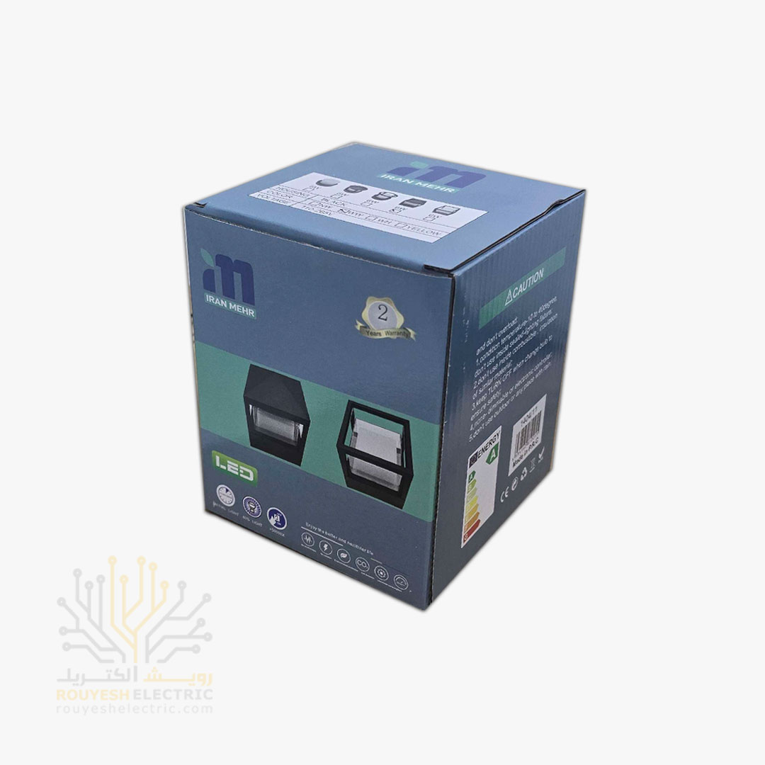 چراغ دیواری دکوراتیو 6 وات برند ایران مهر مدل مکعب یک طرفه کد ایران 39 بدنه مشکی نور آفتابی 6 ماه گارانتی