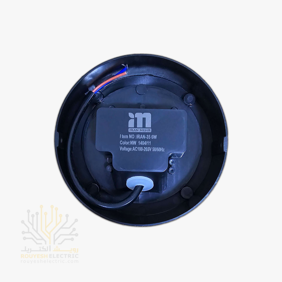 چراغ دیواری دکوراتیو 6 وات برند ایران مهر مدل استوانه یک طرفه کد ایران 35 بدنه مشکی نور نچرال 6 ماه گارانتی