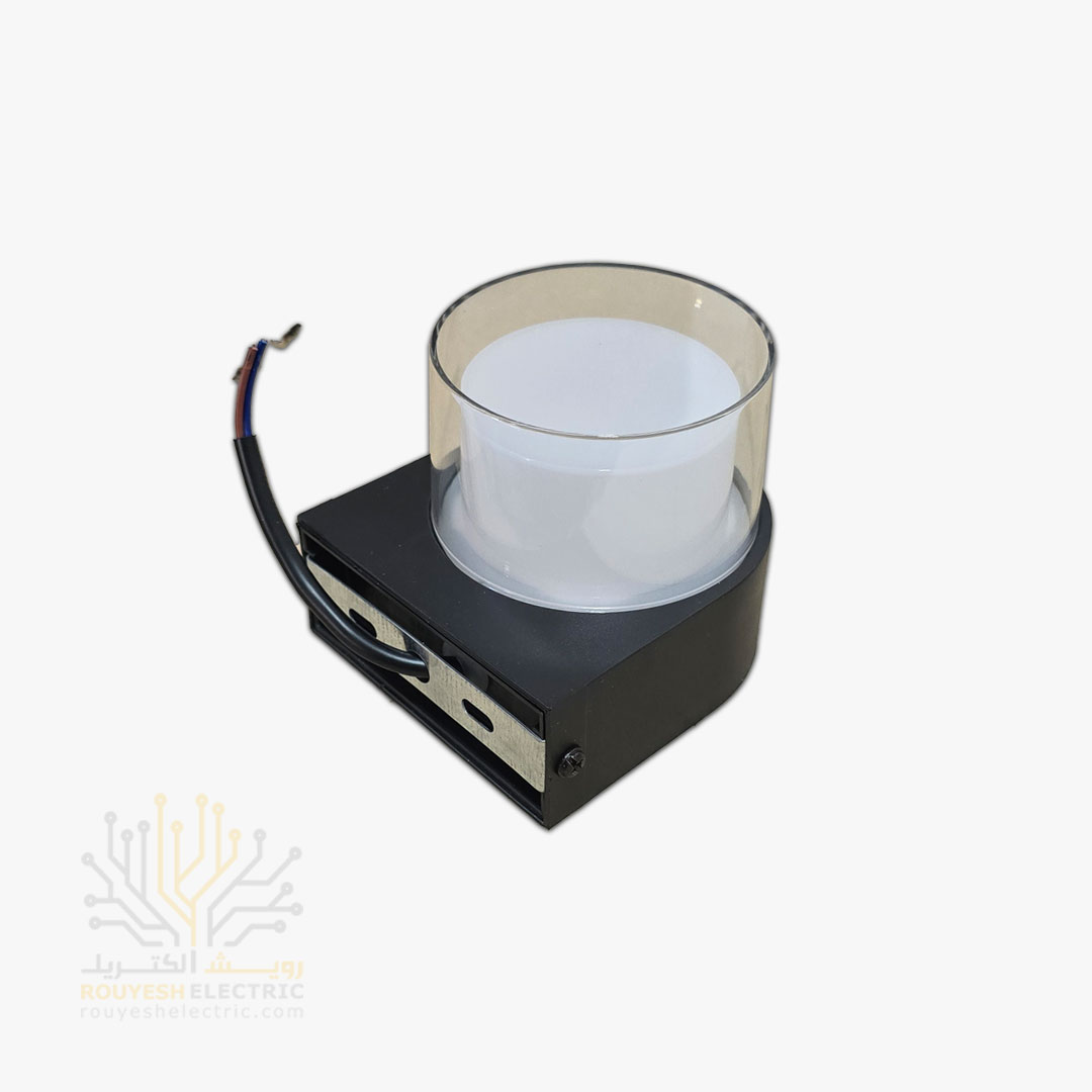 چراغ دیواری دکوراتیو 6 وات برند ایران مهر مدل استوانه یک طرفه کد ایران 17 بدنه مشکی نور آفتابی