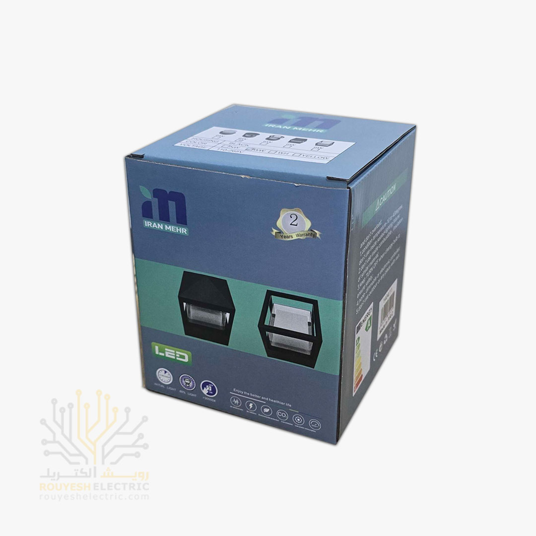 چراغ دیواری دکوراتیو 6 وات برند ایران مهر مدل مکعب یک طرفه کد ایران 37 بدنه مشکی نور آفتابی 6 ماه گارانتی